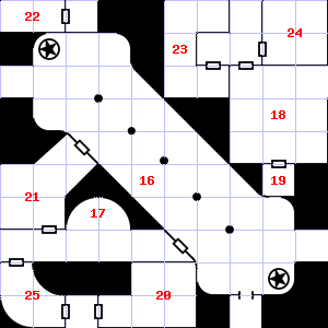 | 19 | 20 | A strong updraft blows through this area. The air here smells of smoke. Encounter: Sprites (16) Treasure: As per monster type. | 21 | Trap: Pendulum blade from ceiling: 1d8 points of damage. | |