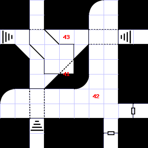 | 43 | Trap: 10' Pit: 1d6 points of damage if you fall in. | 44 | A slight downdraft blows through this area. | 45 | |