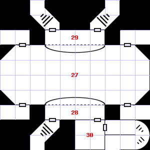 | 28 | This area smells of rotting vegetation. There is a cracked hammer head here. | 29 | This area is very dusty. | 30 | Encounter: Gnomes (5) Treasure: As per monster type. |