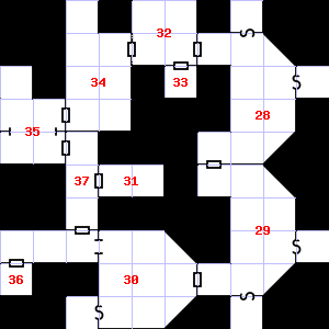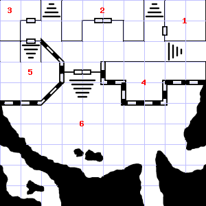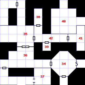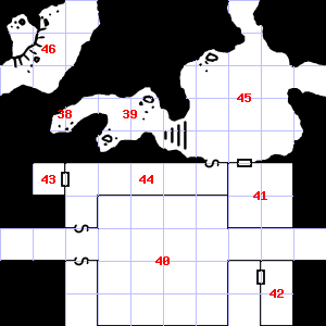 | 34 | A cold air current blows through this area. Encounter: Shrews, Giant (9) Treasure: None. | 35 | 36 | Encounter: Snakes, Cobra (4) Treasure: None. | |