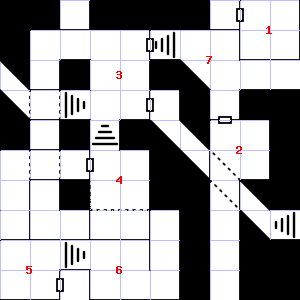 | 64 | 65 | A gusting breeze blows through this area. This area is very dusty. | 66 | There are rotting wood pieces here. | |