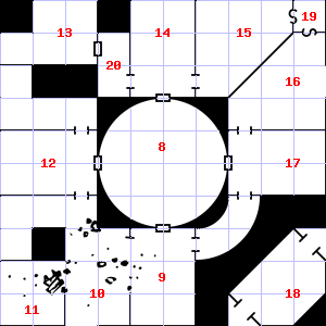 | 13 | Encounter: Traders (8) Treasure: None. | 14 | 15 | A slight breeze blows through this area. This area has a pleasant, earthy smell. Trap: Fog: Looks like poison gas, but harmless. | |