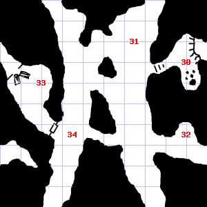 | 31 | This area smells of rotting vegetation. Trap: Ceiling Block falls: Save vs. turn to Stone or take 1d10 points of damage. | 32 | Encounter: Halflings (13) Treasure: None. | 33 | A strong wind blows through this area. This area is covered in cobwebs. |