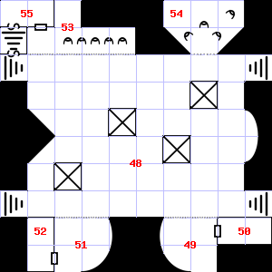 | 67 | 68 | The air here is very cold. Treasure: 100sp, 60gp. Trap: Illusion of monsters: Snakes, Cobra (6) | 69 | A strong downdraft blows through this area. | |