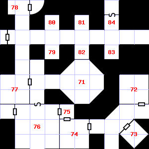 | 76 | Trap: Poison gas: Save vs. Poison or die. | 77 | A slight breeze blows through this area. Treasure: 400sp. Trap: Poison needle: Save vs. Poison or die. | 78 | This area has a pleasant, earthy smell. |