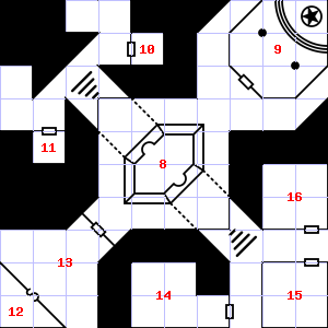 | 1 | Trap: Poison gas: Save vs. Poison or die. | 2 | A strong wind blows through this area. The air here smells of smoke. There is a pile of ashes here. | 3 | There are cracks in the ceiling here. |