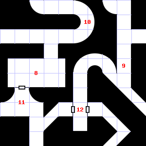 | 10 | The smell of ozone assails your nostrils. It is foggy here, making it difficult to see. Encounter: Shrews, Giant (6) Treasure: As per monster type. | 11 | There is a torch stub here. | 12 | |