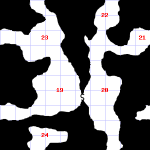 | 22 | There are sticks scattered here. Treasure: 300sp, 10gp. Trap: Illusion of monsters: Kobolds (10) | 23 | A slight downdraft blows through this area. This area is covered in cobwebs. | 24 | A haze of dust hangs in the air. There is a torn leather boot here. |