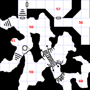 | 70 | This area has a pleasant, earthy smell. There is a pile of ashes here. | 71 | The air here is very hot. There is a slimy coating on the wall here. | 72 | There is a salty, wet smell to this area. A haze of smoke hangs in the air. This area is covered in cobwebs. |