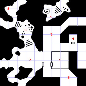 | 1 | A cold air current blows through this area. There is a torch stub here. | 2 | Encounter: Sprites (9) Treasure: None. | 3 | |