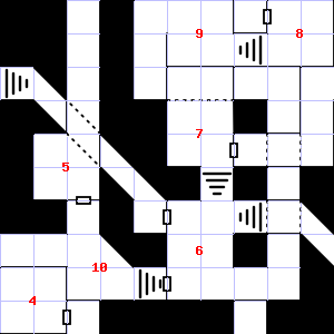 | 10 | The air here is very hot. This area has a stale, fetid smell. The hilt of a broken dagger is lying here.