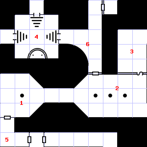 | 1 | 2 | It is foggy here, making it difficult to see. There is a pick handle here. Encounter: Gnomes (4) Treasure: As per monster type. | 3 | Encounter: Lizards, Gecko (1) Treasure: None. | |