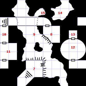 | 7 | Encounter: Halflings (14) Treasure: As per monster type. | 8 | This area is covered in cobwebs. | 9 | Encounter: Beetles, Fire (4) Treasure: None. |
