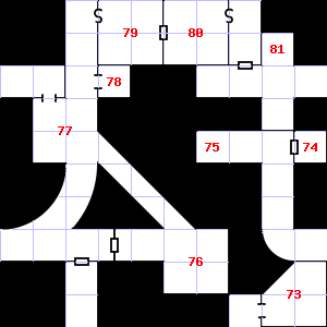 | 76 | A slight breeze blows through this area. A haze of smoke hangs in the air. Treasure: 200sp. Trap: Illusion of monsters: Dwarves (1) | 77 | There are rotting wood pieces here. | 78 | Trap: Pendulum blade from ceiling: 1d8 points of damage. |