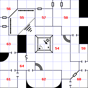 | 54 | This area has a stale, fetid smell. There is a rusted spike here.