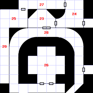 | 31 | The air here smells of smoke. Fog gathers and swirls on the floor, concealing it. Pottery shards are scattered here.
