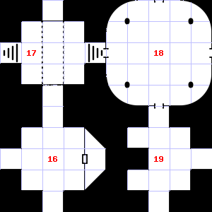 Treasure: None. | 42 | This area smells faintly of urine. There are rotting wood pieces here.