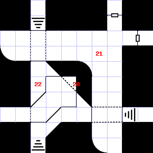 Treasure: As per monster type. | 23 | A metallic smell assails your nostrils. The wall here is damp.