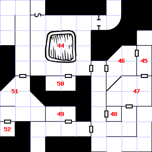 Trap: 10' Pit: 1d6 points of damage if you fall in. | 47 | The air here is very cold. There is a mold growing here.