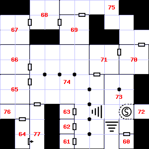 | 58 | A cold air current blows through this area. The hilt of a broken dagger is lying here.