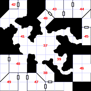 | 43 | A slight, damp breeze blows through this area. Encounter: Gnomes (6) Treasure: As per monster type. | 44 | Encounter: Skeletons (9) Treasure: None. | 45 | The ceiling here is damp. |