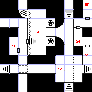 | 55 | A cold air current blows through this area. Trap: Pendulum blade from ceiling: 1d8 points of damage. | 56 | A cold air current blows through this area. | 57 | The air here is very cold. This area has a stale, fetid smell. Trap: Poison gas: Save vs. Poison or die. |