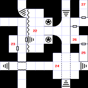 | 27 | A haze of smoke hangs in the air. There are cracks in the floor here.