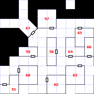Treasure: As per monster type. | 59 | This area is very dusty.