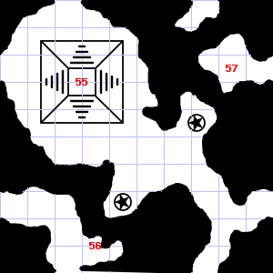 | 55 | It is foggy here, making it difficult to see. The ceiling here is damp. Treasure: 200sp, 60gp. | 56 | This area smells of rotting vegetation. Pottery shards are scattered here. Encounter: Beetles, Fire (5) Treasure: As per monster type. | 57 | There is a pile of ashes here. Encounter: Acolytes (5) Treasure: None. |