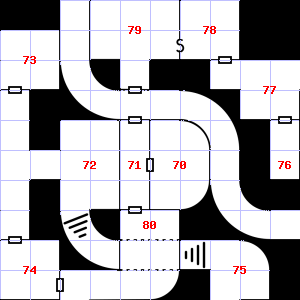 | 70 | Encounter: Traders (8) Treasure: As per monster type. | 71 | A slight downdraft blows through this area. It is foggy here, making it difficult to see. This area is covered in cobwebs. | 72 | This area smells of rotting vegetation. This area is covered in cobwebs. Encounter: Acolytes (8) Treasure: None. |