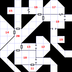 | 13 | A slight downdraft blows through this area. This area has a stale, fetid smell. There is a broken bottle here.