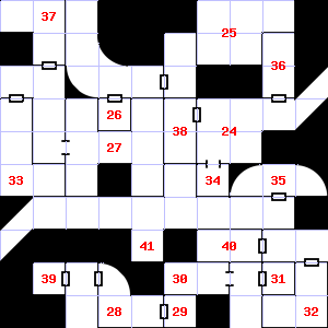| 25 | There is a salty, wet smell to this area. There is a rusted spike here. | 26 | The air here is very cold. This area has a stale, fetid smell. There is a slimy coating on the wall here. | 27 | |