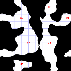 | 79 | Encounter: Gnomes (2) Treasure: None. | 80 | There are bits of fur and hair scattered around here. Encounter: Gnomes (5) Treasure: As per monster type. | 81 | A slight updraft blows through this area. This area has a pleasant, earthy smell. Fog gathers and swirls on the floor, concealing it. This area is very dusty. Encounter: Goblins (3) Treasure: As per monster type. |