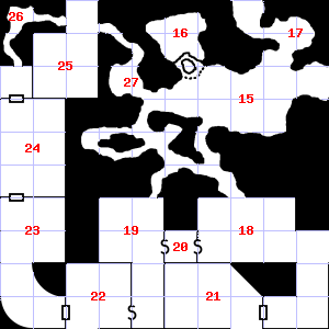 | 19 | A slight downdraft blows through this area. This area smells of rotting vegetation. There is a pick handle here.