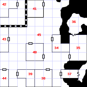 Treasure: None. | 42 | A slight downdraft blows through this area. There is a pile of rags here.