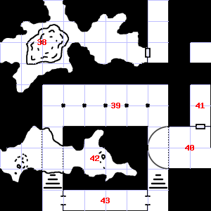 | 43 | A slight breeze blows through this area. This area has a stale, fetid smell. There is a small puddle of water here.