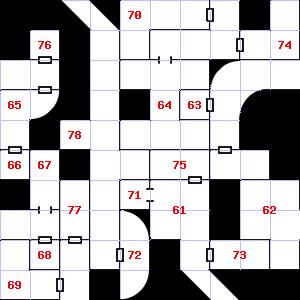 | 70 | A slight, damp breeze blows through this area. This area smells faintly of manure. This area is very dusty. | 71 | Encounter: Skeletons (8) Treasure: As per monster type. | 72 | This area smells faintly of manure. Trap: Chute: No damage, but slide to the next level down (ignore if there is no lower level). |