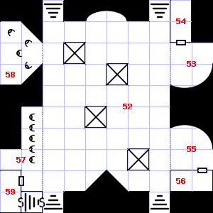 Treasure: 400sp, 10gp. | 60 | Fog gathers and swirls on the floor, concealing it.