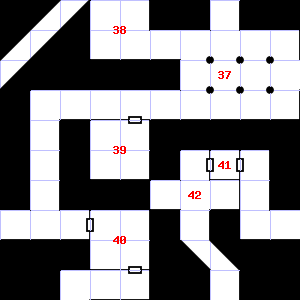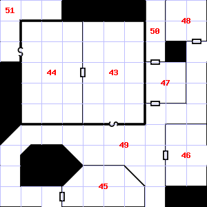 | 43 | A strong, moaning wind blows through this area. Fog gathers and swirls on the floor, concealing it. There are cracks in the wall here.