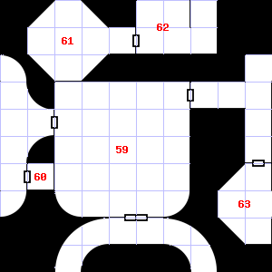 Treasure: As per monster type. | 59 | There are cracks in the wall here.