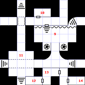 | 13 | A slight, damp breeze blows through this area. There is a badly dented helmet here.