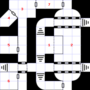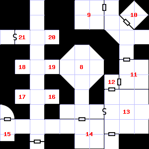 | 6 | This area has a stale, fetid smell. There is a corroded chain here.