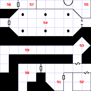 | 49 | A cold air current blows through this area. Encounter: Beetles, Fire (4) Treasure: As per monster type. | 50 | A slight breeze blows through this area. There is a mold growing here. Encounter: Sprites (12) Treasure: As per monster type. | 51 | This area smells faintly of manure. Treasure: 400sp. |