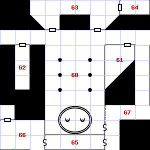 | 61 | The air here is very hot. This area smells faintly of urine. This area is covered in cobwebs. Encounter: Lizards, Gecko (1) Treasure: As per monster type. | 62 | There are food scraps scattered here. Treasure: 100sp, 40gp. | 63 | There is a pile of dung here. Treasure: 600sp, 40gp. Trap: Poison snake: 1 hit dice. |