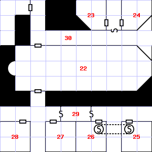 | 28 | The ceiling here is damp. Trap: Chute: No damage, but slide to the next level down (ignore if there is no lower level). | 29 | A slight updraft blows through this area. This area smells of rotting vegetation. | 30 | |