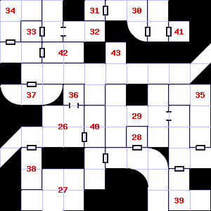 | 37 | 38 | This area smells of rotting vegetation. There are dry leaves and twigs scattered here. | 39 | This area is very dusty. Treasure: 600sp, 60gp. | |