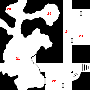 | 16 | This area has a pleasant, earthy smell. | 17 | It is foggy here, making it difficult to see. There is water dripping here. | 18 | A slight updraft blows through this area. This area has a stale, fetid smell. |