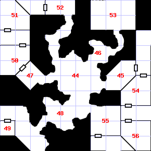 | 55 | Your nostrils are overwhelmed by a sulphurous smell. There are rotting wood pieces here. | 56 | There is a large puddle of water here. | 57 | Your nostrils are overwhelmed by a sulphurous smell. This area is covered in cobwebs. Encounter: Goblins (4) Treasure: As per monster type. |