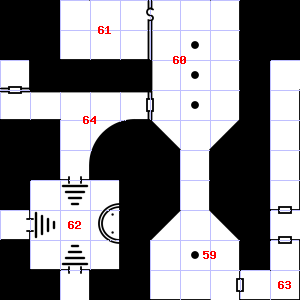 | 58 | This area smells of rotting vegetation. Fog gathers and swirls on the floor, concealing it. This area is covered in rubble and dirt. | 59 | This area is covered in cobwebs. | 60 | |