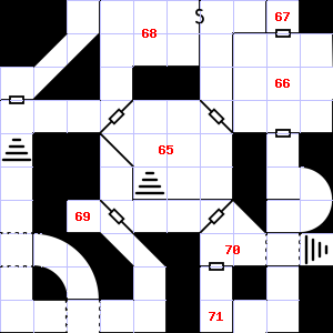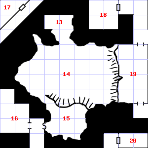 | 13 | There is a putrid smell coming from something nearby. Treasure: 500sp. | 14 | 15 | A strong wind blows through this area. An acrid smell assails your nostrils. | |